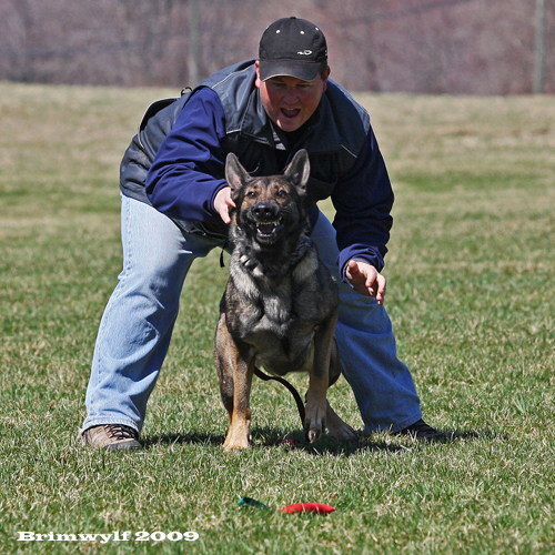 To create this harmonious picture, we need a dog with the required willingness to work for his handler, protective instincts and an aptitude for tracking. We can develop and increase the desire to work in the dog through several methods. Puppies are usually easy to work with because they are growing quickly and constantly hungry. This allows us to do several short sessions in a day at each meal time. Training the pup prior to feeding develops good work ethic and can also increase food drive. The pup can also be restrained a little from the food to increase desire and excitement.